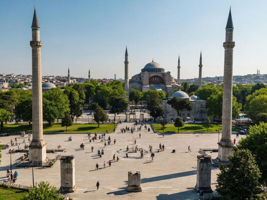 Два монументальных храма, которые веками конкурировали в роскоши и архитектурном величии. Голубая мечеть поражает 200 тысячами изразцов, а Айя-София — легендарными византийскими мозаиками и грандиозным куполом VI века.