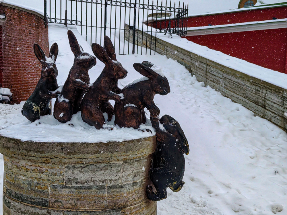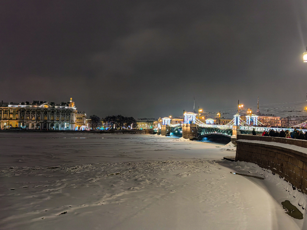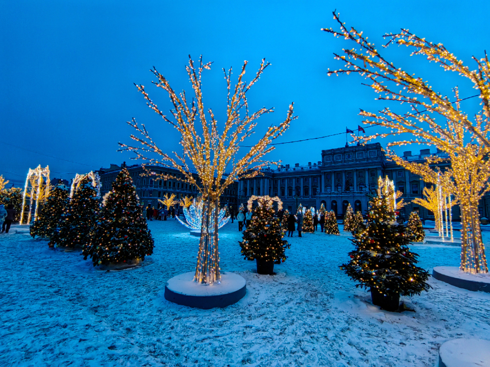 Дворцовая площадь – самый главный центр торжества. Новогодняя ель переливается яркими огнями. Если посчастливится, то на площади вы сможете увидеть Деда Мороза. Он приезжает сюда из Великого Устюга для того чтобы поздравить горожан. На Пионерской площади организуются крупные ярмарки. Здесь вы сможете купить милые сувениры, игрушки, валенки, сладости и прочие приятные мелочи. Открывается каток, проводятся разнообразные конкурсы. У Петропавловской крепости начинает работать огромный экран. Также заливается большая ледяная горка.