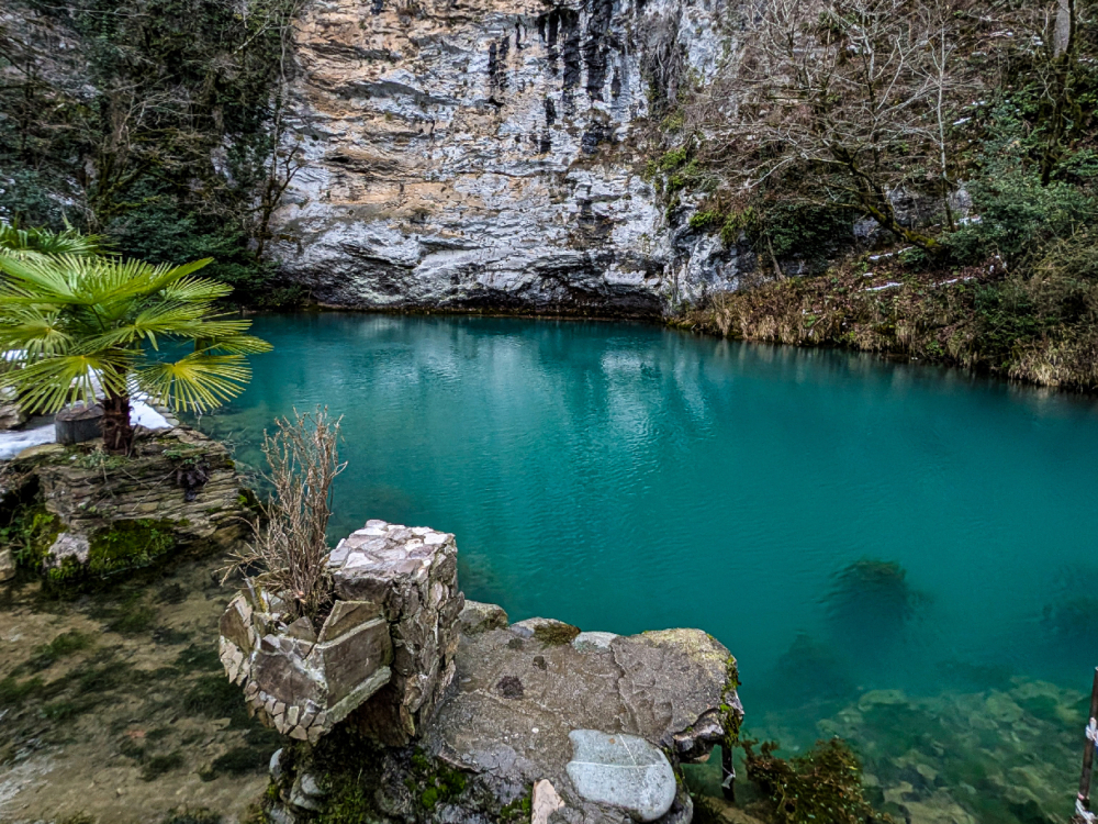 Юпшарский каньон. Между слиянием с Гегой и истоком из озера Рица река Юпшара проходит узкий каньон, где скалы огромной высоты стискивают ее и прижимают дорогу к кромке воды. Это так называемые Юпшарские ворота, одно из красивейших мест в ущелье