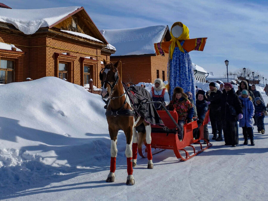 Народное гуляние,где весело и задорно можно провести время, — это Масленица. Издавна народ отмечал этот праздник целую неделю. Все это время сопровождалось различными развлечениями: катание на санях, представление скоморохов, кукольные театры во главе с Петрушкой. В Свияжске сохранили эти традиции. Приехав на праздник, вы сможете отдохнуть душой. Будем водить хороводы , участвовать в конкурсах , дети весело скатятся со снежной горы. Одним словом , окунемся в душевную праздничную атмосферу, порадуемся друг дружке- давно ли так собирались! Будет и ярмарка, и ароматные блины с чаем, и «стенка на стенку»: найдём где разгуляться, развернуться! Приглашаем нарядиться и поучаствовать в конкурсе самодельных масок и костюмов. И ваши старания будут вознаграждены: призы будут богатые, от музея-заповедника и партнёров, мир не без добрых людей! И ключевым событием станет шествие с чучелом Зимы. Проводим зиму-бедняжку, сожжём все хвори, трескучие морозы, да какие ещё ни есть ограничения. Пора быть весне!