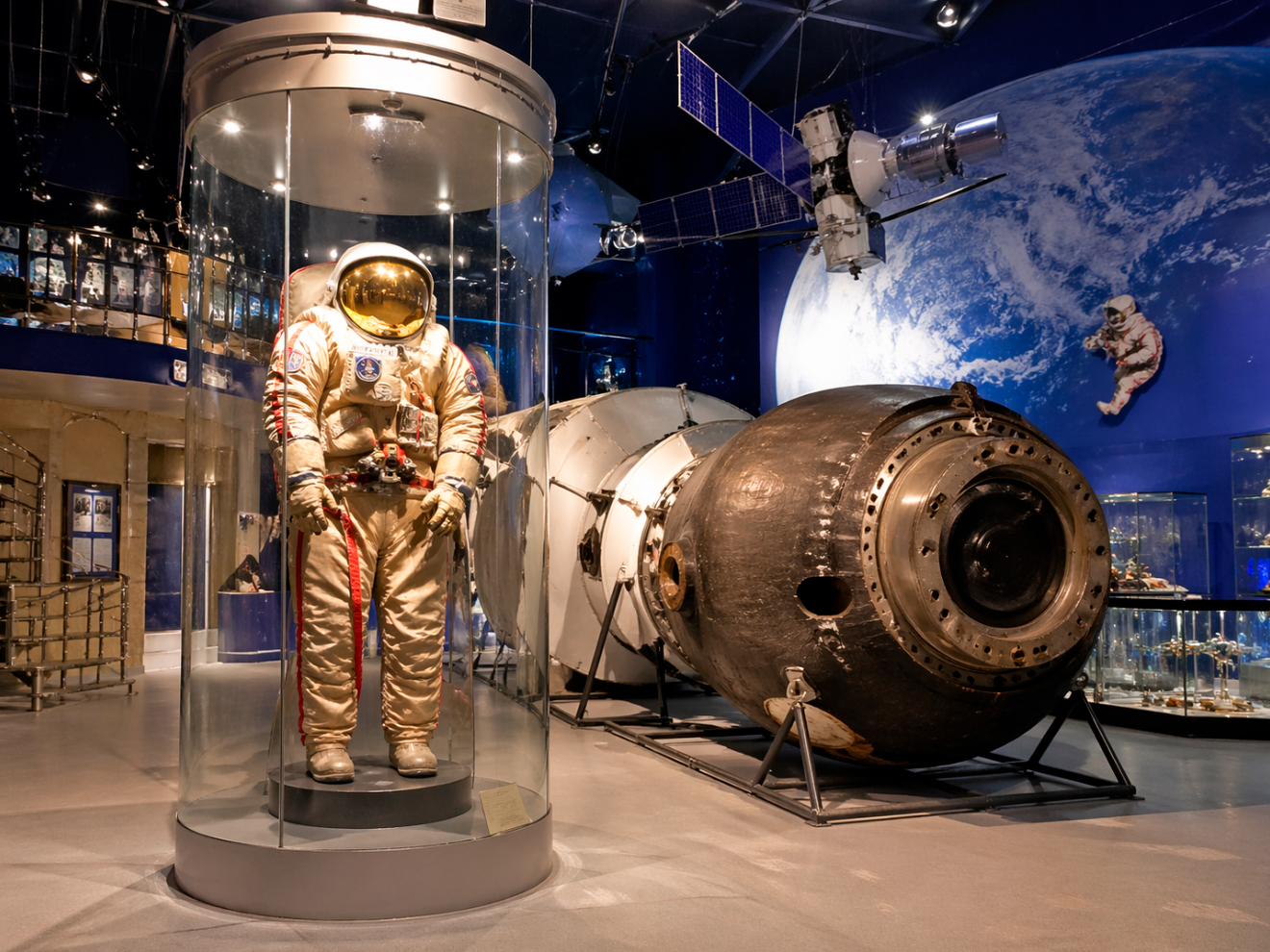 Экспозиции включают реальные образцы техники, модели космических аппаратов, элементы оборудования и интерактивные зоны. Особый интерес вызывает возможность «прогуляться» по Международной космической станции, увидеть, как устроена жизнь космонавтов, и познакомиться с космическим питанием.